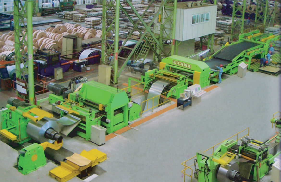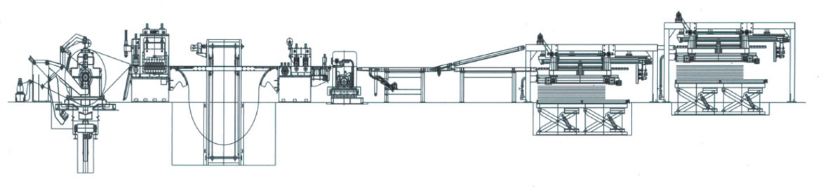 性能特點(diǎn): 該生產(chǎn)線(xiàn)是將較薄金屬卷板整平、剪切成塊狀板材的專(zhuān)用設(shè)備,實(shí)現(xiàn)工件連續(xù)運(yùn)行不停的工況下,完成高速精確定長(zhǎng)剪切,工件平整度及板型好,特別適合于剪切短板工件的批量生產(chǎn)。 通常由上料小車(chē)、開(kāi)卷機(jī)、引頭裝置、校平主機(jī)、活動(dòng)過(guò)橋、導(dǎo)向糾偏裝置、定尺機(jī)構(gòu)、覆膜裝置、飛剪主機(jī)、輸送工作臺(tái)、氣動(dòng)排料架、液壓升降垛料臺(tái)、運(yùn)料滾道臺(tái)及液壓、氣動(dòng)及電氣控制系統(tǒng)等組成。 主要液壓、氣動(dòng)、電控元件、定尺飛剪控制系統(tǒng)均選用國(guó)際一線(xiàn)品牌,操作界面友好,可靠性高。
